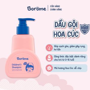 Borome hiểu rằng tình yêu của cha mẹ đối với con cái là vô điều kiện và không ngừng. Với trách nhiệm đó, chúng tôi đã đặt tâm huyết vào việc phát triển một công thức độc đáo, dịu nhẹ và an toàn, được thiết kế đặc biệt cho trẻ em từ 3-15 tuổi. Chúng tôi chọn lựa các thành phần tự nhiên, không có chất tẩy rửa, xà phòng và silicon. Ngoài ra, dầu xả còn được bổ sung thêm tinh chất Hydrolyzed Keratin và Camellia Japonica chiết xuất từ cây trà Nhật Bản, giúp cung cấp dưỡng chất cho tóc, làm tóc trở nên mềm mại và giảm tình trạng gãy rụng.